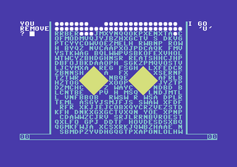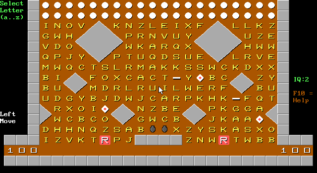 To make moves during play, simply select the letter you want to remove by typing LOWERCASE a..z, or move the mouse to the letter and click the left button. Other Commands: