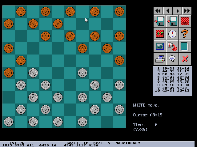 DYNAMO DRAUGHTS is a DOS program that plays a number of Draughts/Checkers variants - International (10x10), Canadian (12x12), Spanish (8x8), American Pool, Portugese and Russian (8x8) games. It can also be configured to play irregular/experimental board sizes like 12x10, 10x8, 9x9, etc.
